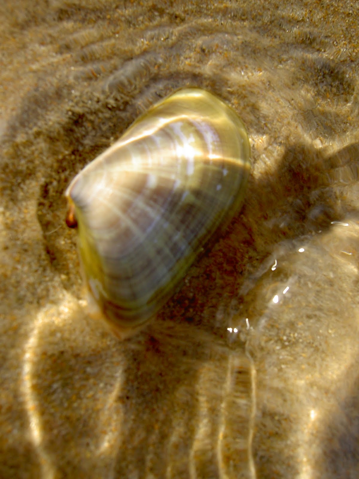 Sí, ya sé que con arroz o simplemente abiertas a la plancha y con un chorrito de limón están riquísimas, pero tengan un poco de miramiento, nuestra artista invitada se puede mosquear con según que tipo de comentarios. Como podéis apreciar, esta es una almejita rubia nativa de Chiclana. Sé que estos días abundan otro tipo de almejas rubias, sobre todo de la especie teutonas teutonus, almeja del norte de Europa que suele emigrar en verano a países más calidos, pero ésas son más difíciles de fotografiar, no se dejan ver.